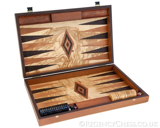 Manopoulos Luxury Olive Wood Burl Backgammon Set