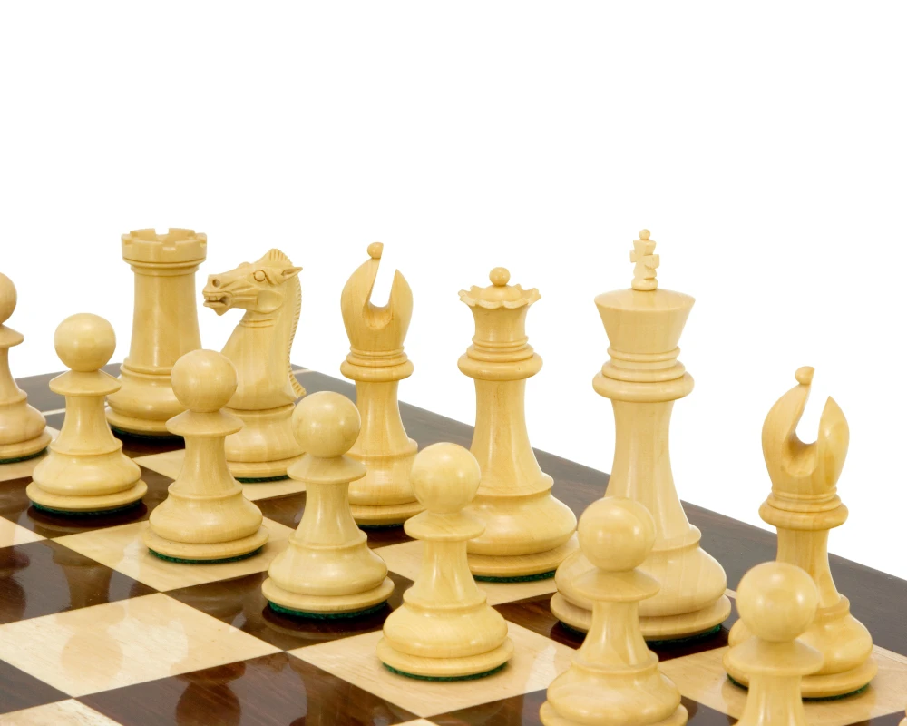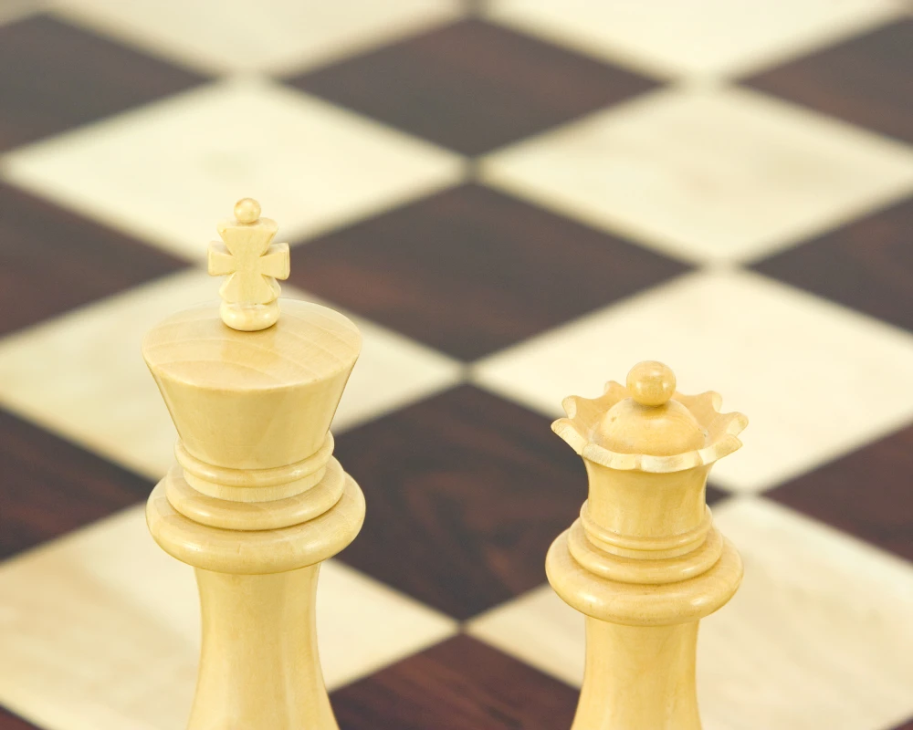 The Sandringham Series chessmen represent only the finest quality and workmanship. These classic Staunton chess pieces have been expertly crafted from the highest grade ebony and boxwood by one of the world’s best producers of chessmen. Successfully taking the Staunton design to a new level of beauty, without making any significant departures from the original 1850s design, this supreme luxury set enjoys a flawless finish, perfect uniformity and triple weighting. The weighting and balance of each piece is extremely satisfying when held in the hand or suspended by your thumb and forefinger while hovering it over a glossy, lacquered chess board.