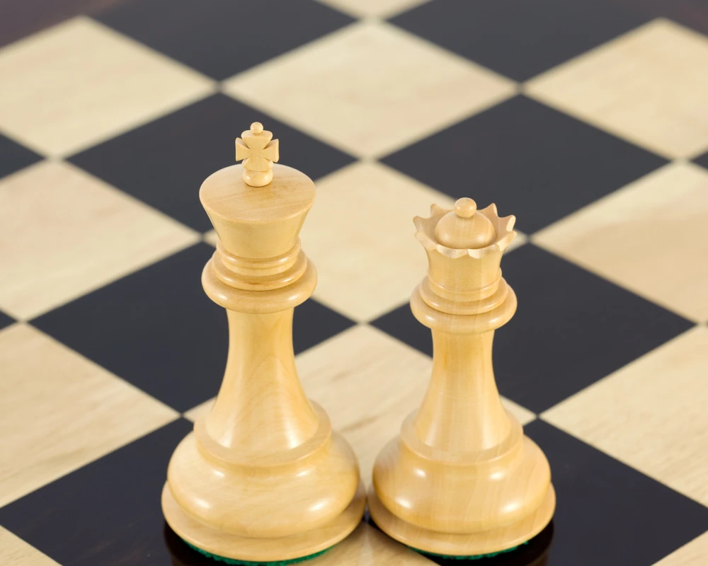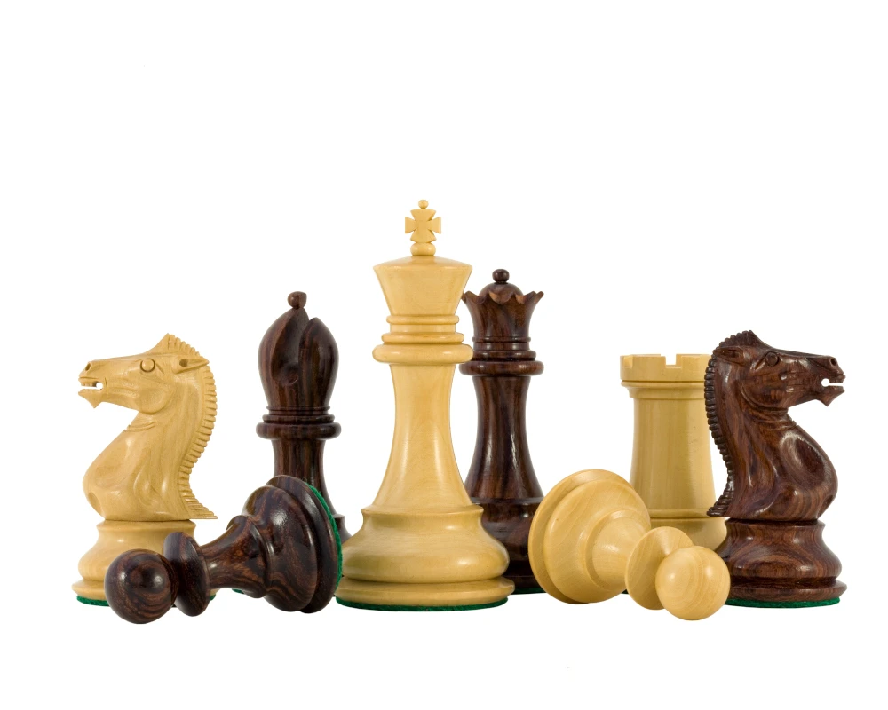 The quality of the finish on the chess pieces has been achieved by a lengthy polishing process that allows the close, dense grains of the wood to shine through naturally, allowing for the most intense detail and sharpness to be retained in every piece. The rosewood used for the dark chess pieces has been carefully selected for its grain and colour. The uniformity of the tones throughout the set is superb. These sets are produced in tiny numbers, usually just five at a time, and each one comes certified and numbered as a genuine Regency Chess Company product.