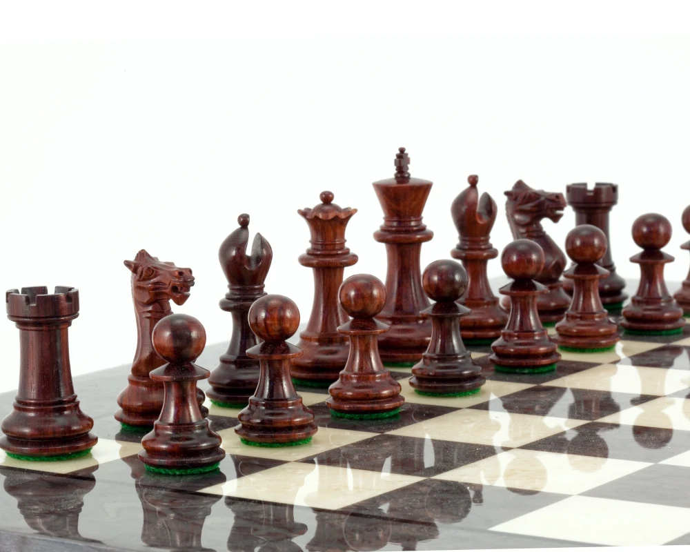 The quality of the finish on the chess pieces has been achieved by a lengthy polishing process that allows the close, dense grains of the wood to shine naturally. This allows for the most intense detail and sharpness to be retained on every piece. These exquisite sets are produced in tiny numbers, usually just five at a time, and each one comes certified and numbered as a genuine Regency Chess Company product.