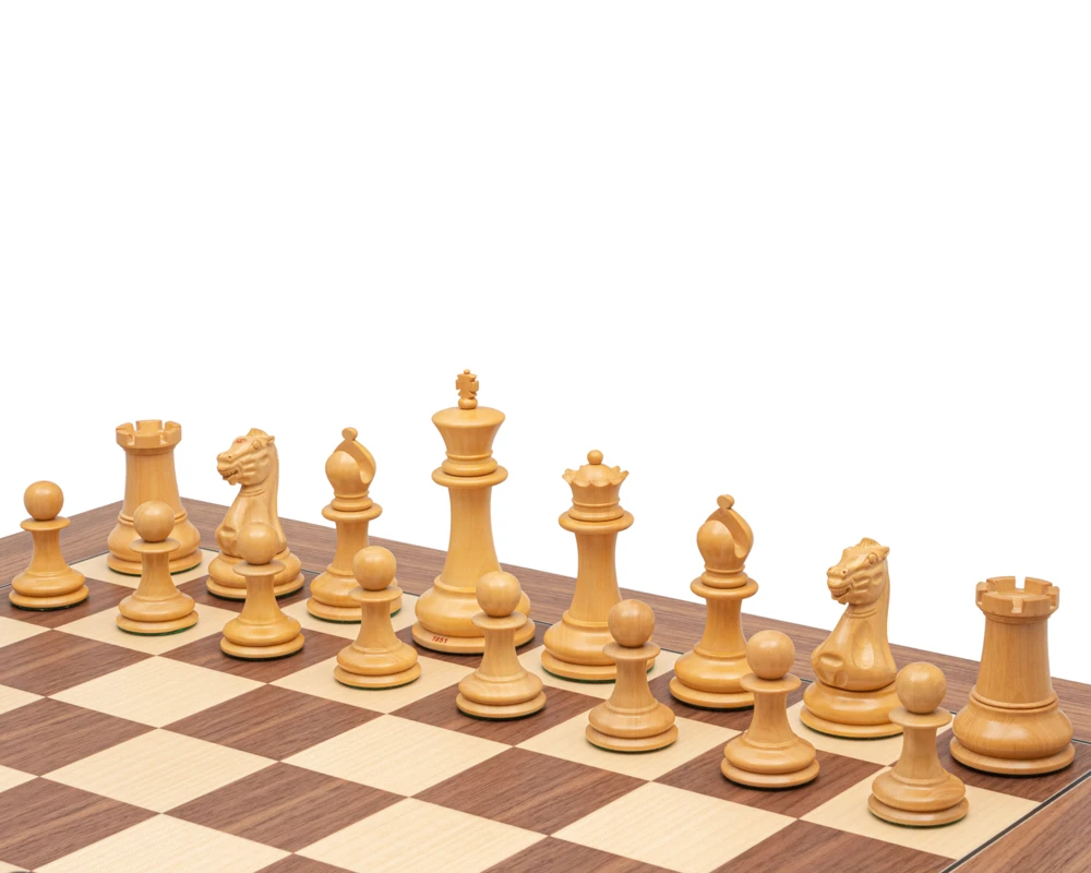 The chess board in this set has been expertly crafted by Rechapados Ferrer in Spain using precision laser cutting techniques and stunning wooden veneers combined with expert lacquering and finishing. The underside of the board is finished in a satin veneer that is a different colour from the playing surface of the board. The veneers used for the underside may vary in colour from batch to batch.