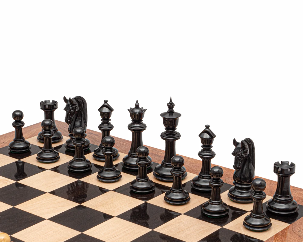 The Blackburne Ebony Chess Men are a welcome new addition to the comprehensive range here at The Regency Chess Company and these stunning chess men deserve nothing less than a stunning battlefield so we have matched them with something really special. A solid wooden board.
