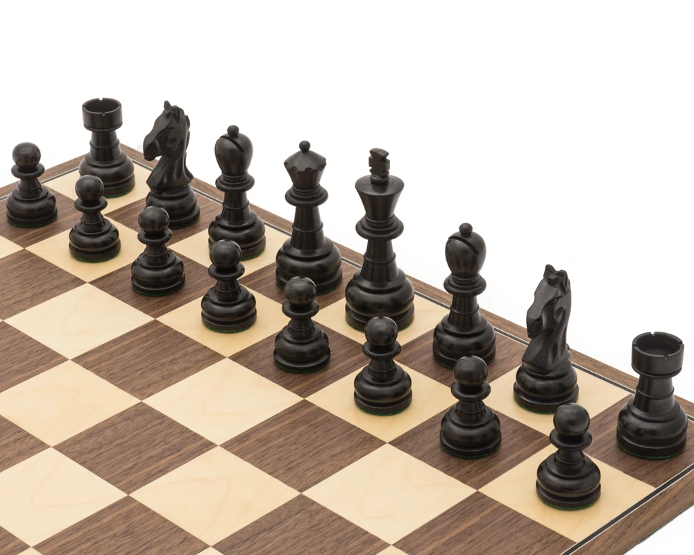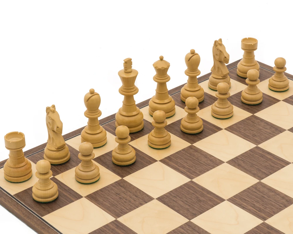 The chess board in this set has been expertly crafted by Rechapados Ferrer in Spain using precision laser cutting techniques and stunning wooden veneers combined with expert lacquering and finishing. The underside of the board is finished in a satin veneer that is a different colour from the playing surface of the board. The veneers used for the underside may vary in colour from batch to batch.