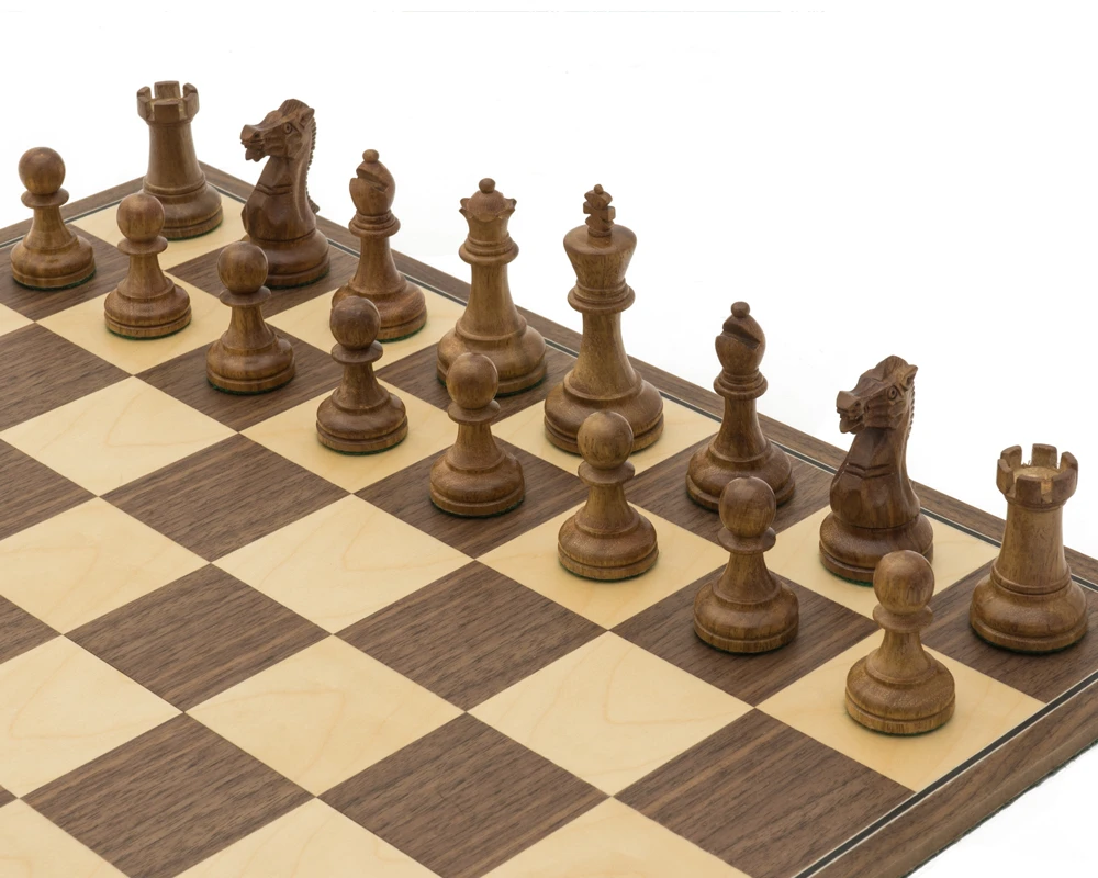 The chess board in this set has been expertly crafted by Rechapados Ferrer in Spain using precision laser cutting techniques and stunning wooden veneers combined with expert lacquering and finishing. The underside of the board is finished in a satin veneer that is a different colour from the playing surface of the board. The veneers used for the underside may vary in colour from batch to batch.