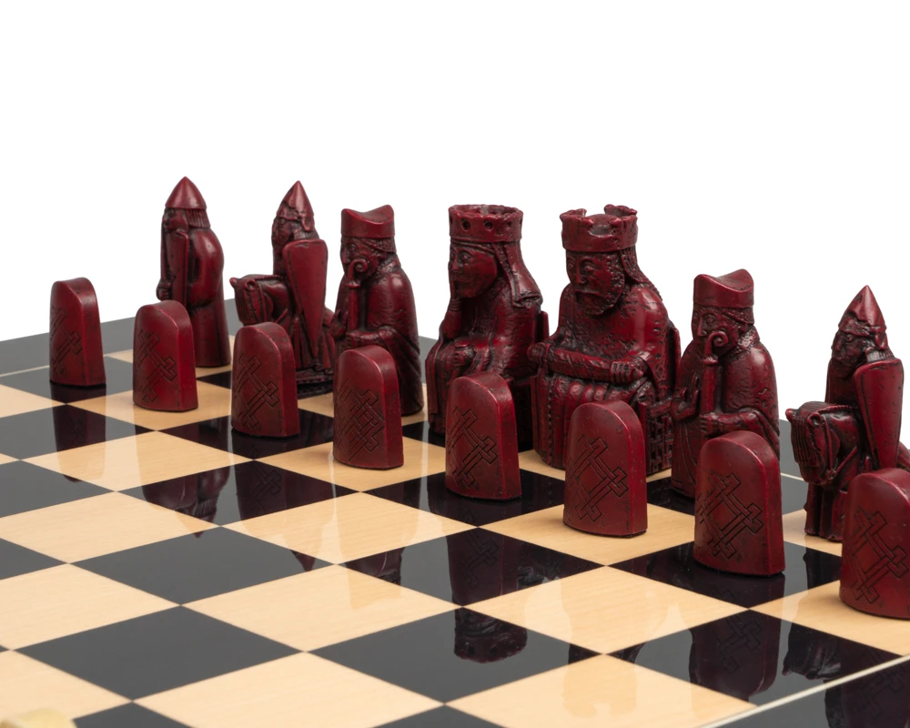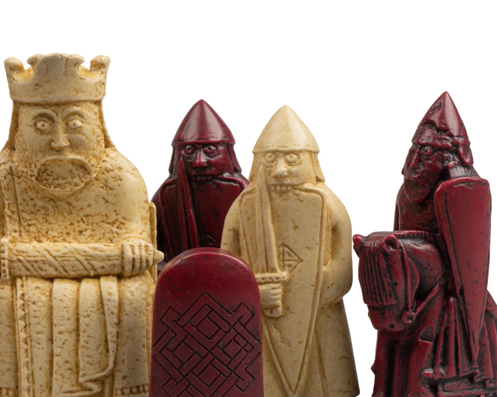 We all love the quirky Isle of Lewis chessmen with their magical history and background but here is something a little bit different. Our beloved chess pieces are now available in red and cream. Nothing is lost in the quality, the amazing detail has been retained and you will still get the additional queens along with a cleaning cloth, chess rules, and a two year warranty.
