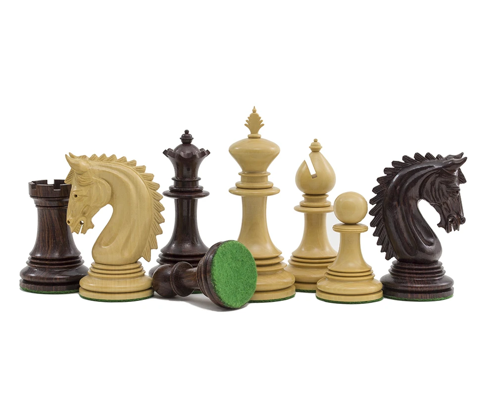 Despite the considerable size of the Lemington chessmen, they will sit beautifully on a 21.7 inch (55 cm) chess board. We have matched it with a high quality Spanish Palisander board The Lemington Rosewood Palisander Chess set to make a stunning chess set.