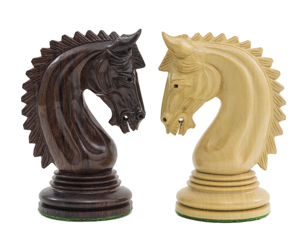 Our master craftsmen have excelled themselves yet again in the exquisite carving and detail of these pieces. As with all our luxury chessmen, the knights are the most ornamental in the Lemington set. This high level of detail can be found also on the finial of the magnificent king and the mitre of the bishop.