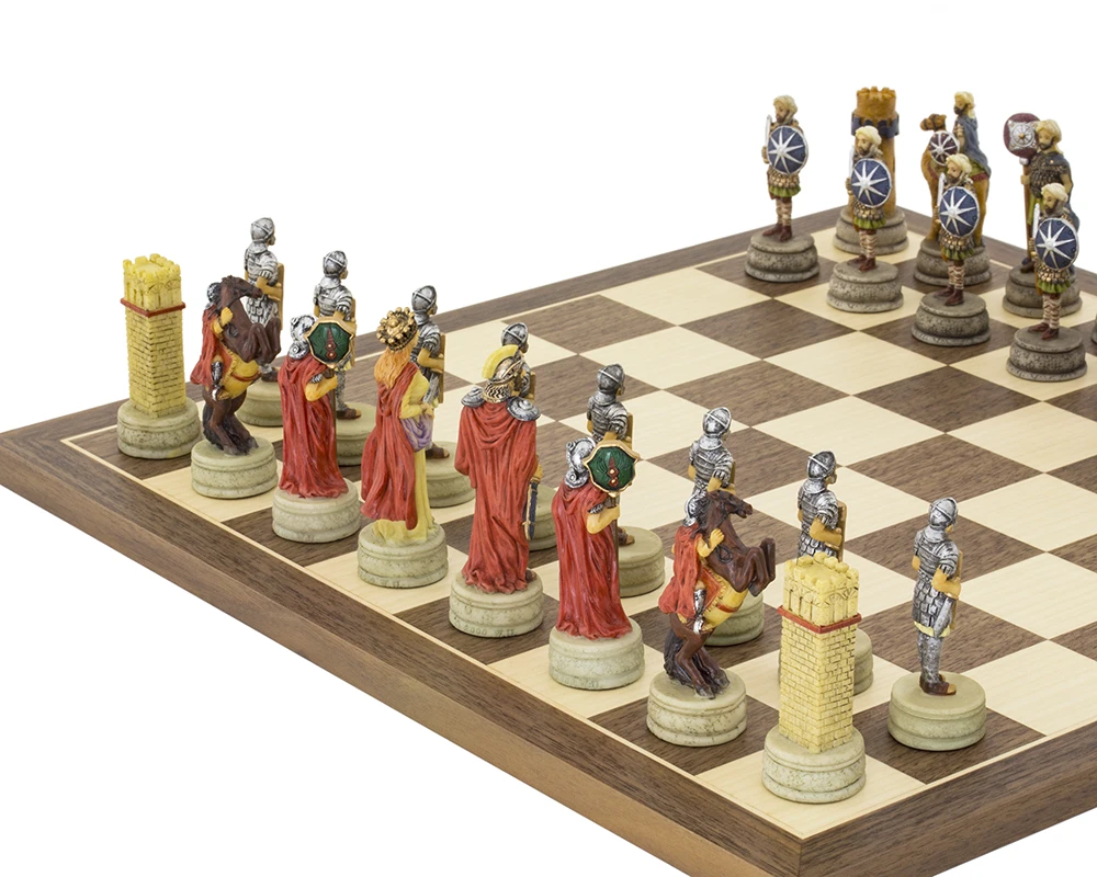 We have matched these stunning pieces with a beautiful 15.75 inch walnut and maple board from Spain however The Romans vs Arabs Themed Chess Men are also available on their own. Either way, they make a superb gift.