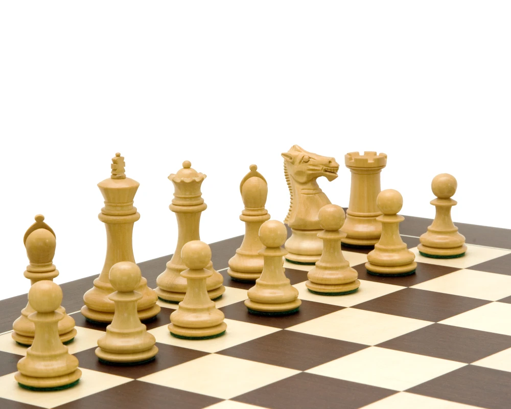 Elegantly styled Windsor series Rosewood chess pieces paired with our Deluxe Wenge veneer playing board.